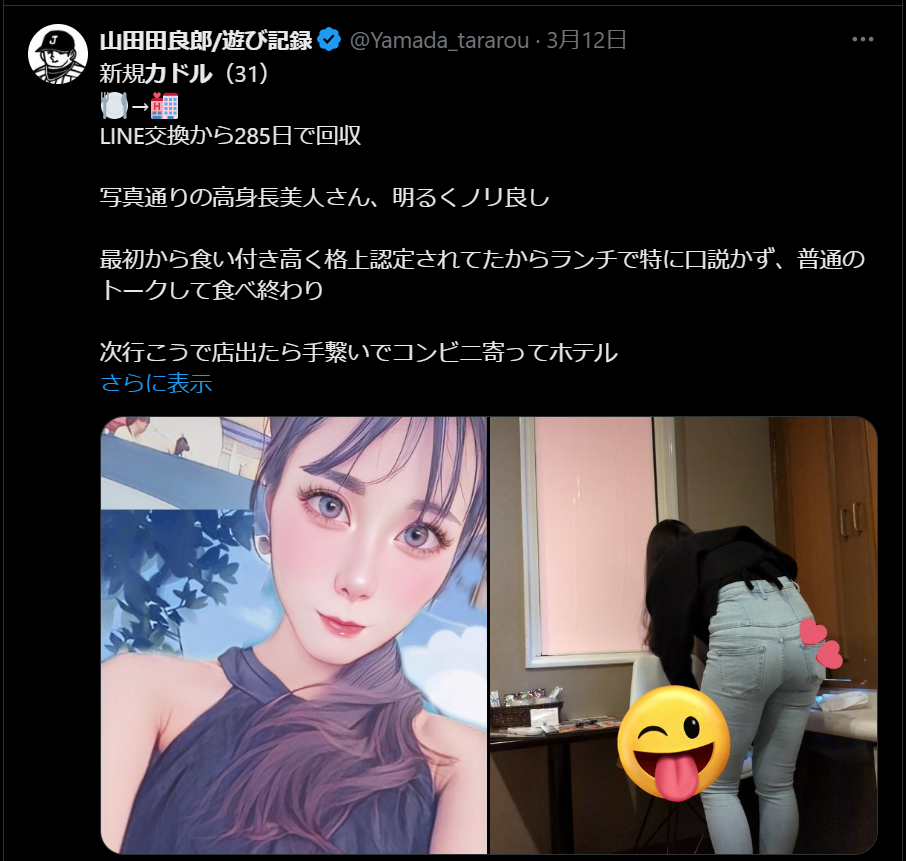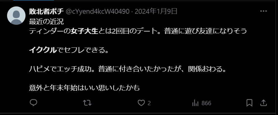 TinderïŒãã£ã³ããŒïŒã§ã»ãã¬ãäœãã³ã
